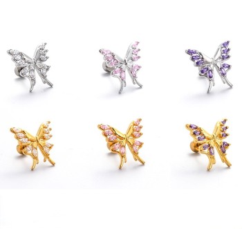 Orecchio in acciaio inossidabile PIERC farfalla orecchino CZ lastricato squisito orecchio perno trago labbro anello Piercing per il corpo gioielli