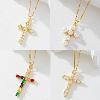Collana con ciondolo a croce Gesù placcato in oro con più colori ciondoli a croce in zircone regali di Pasqua gioielli Hip Hop rame