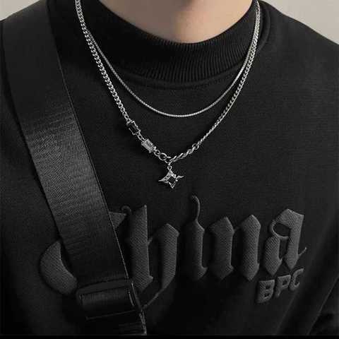 Collana con ciondolo a forma di stella nera Hip Hop per gli uomini di nicchia multistrato a maglia nera girocollo a catena