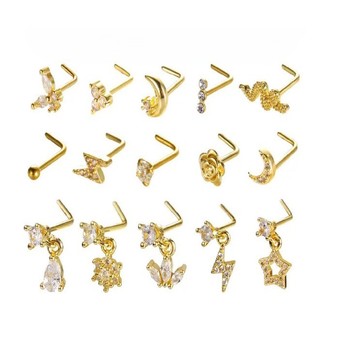 Alla moda a forma di L borchie per naso pendenti Piercing nappine di fiori di rame e luna con zircone con vite Piercing gioielli caldi